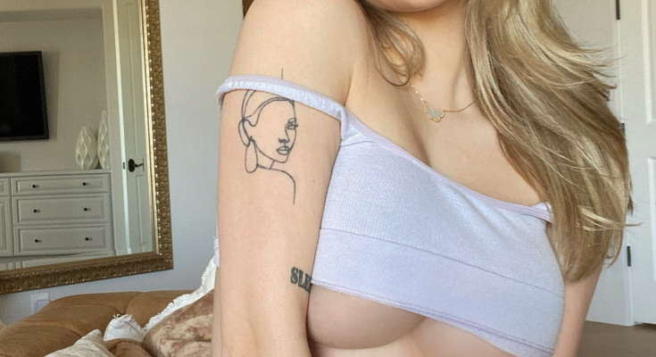 The photo captures a person seated indoors, likely on a couch or bed, in a softly lit room that feels intimate and curated. The lighting is natural and diffused, casting a gentle glow across the subject’s skin and surroundings. This softness creates a mood of quiet introspection, as if the moment is suspended in a hush.